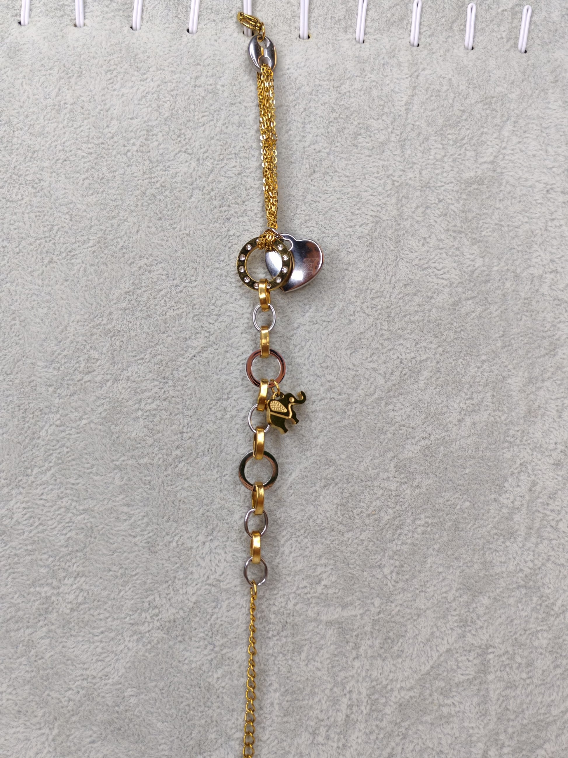 Bracelet made of high-quality stainless steel, rust-resistant, featuring a chic gold and silver design with an elephant and heart pendant.