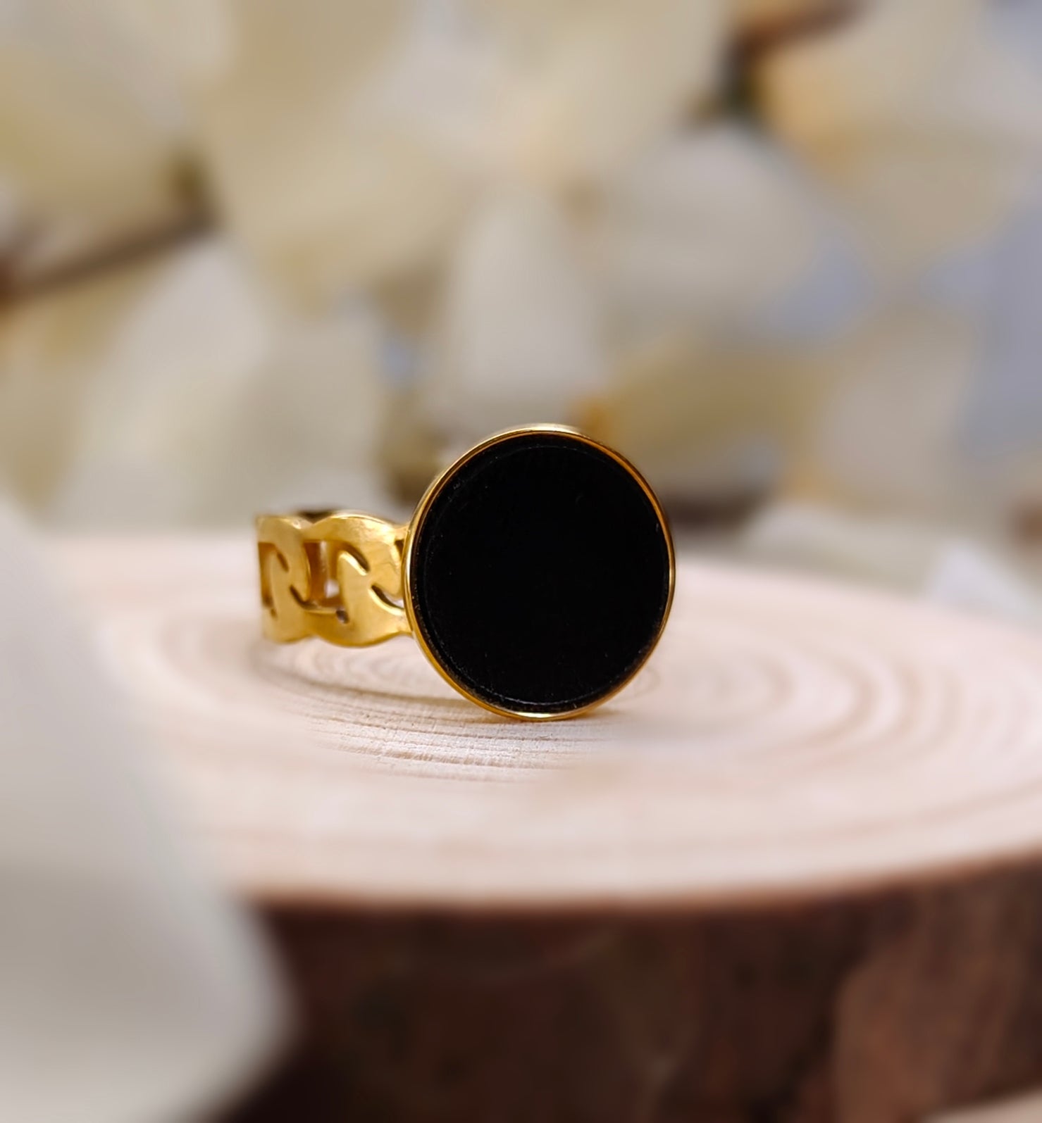 Premium stainless steel ring, rust-resistant, featuring a sleek round black stone.