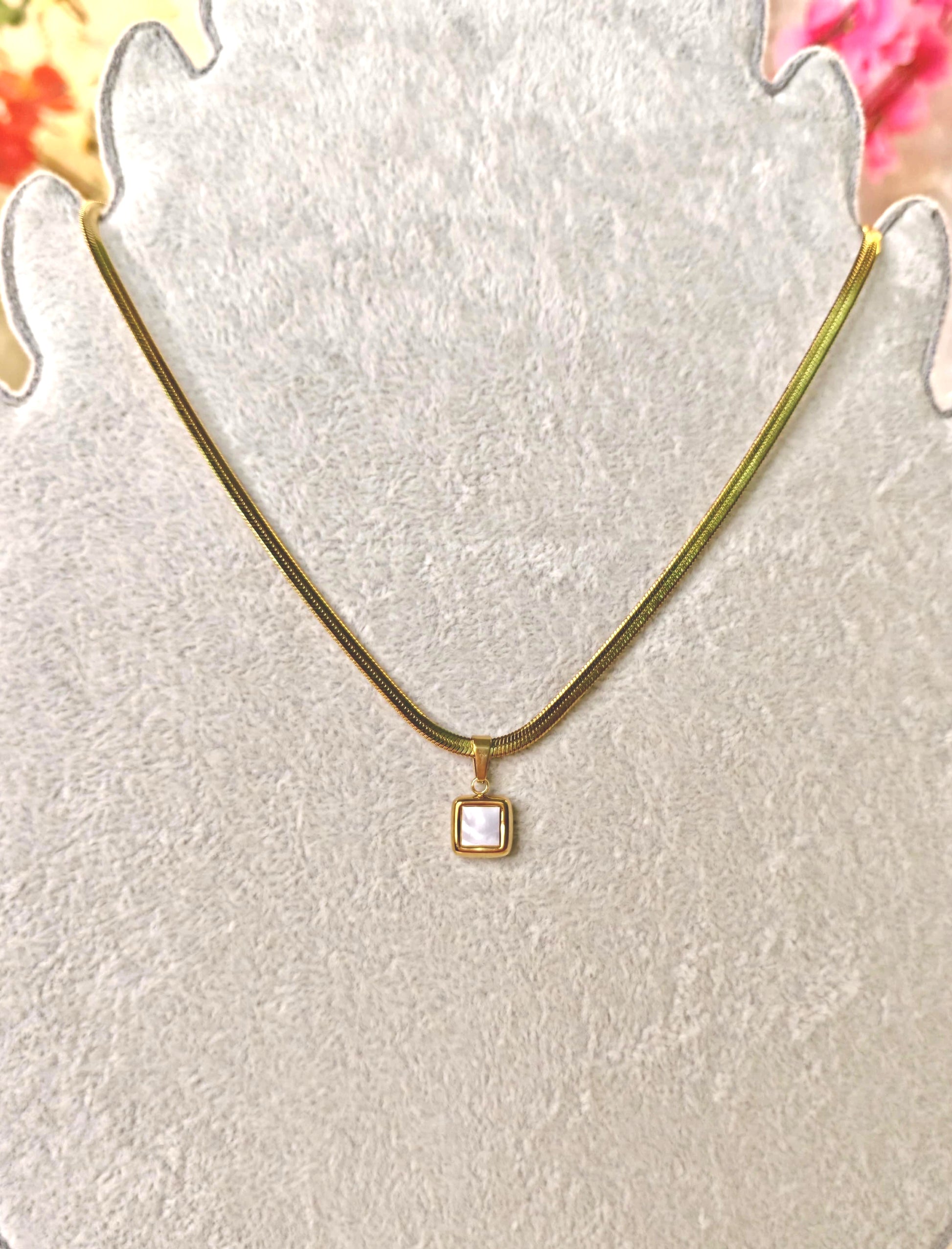 Stainless steel necklace with a simple square white-stone pendant – elegant, rust-resistant, durable, and high-quality.